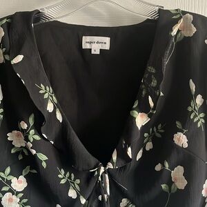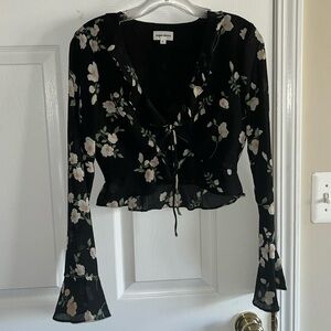 Floral long sleeve (slightly) cropped top with tie closure in the front. Like new