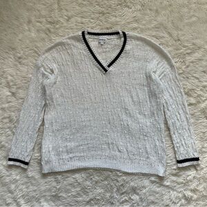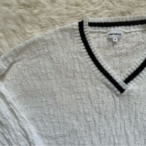 Superdown x Revolve Sweater Long Sleeve V Neck Knit White Black M