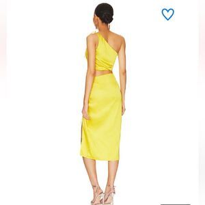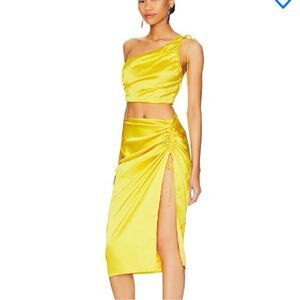Superdown kristy ruched skirt set Yellow Dress satin two piece top Revolve XS