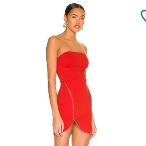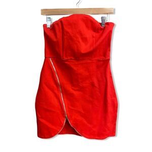 Superdown nylah front zip dress Strapless Red Mini zipper Revolve M