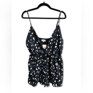 Superdown shelby front tie romper Black White Polka Dot jumpsuit Revolve XL