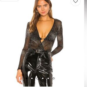 Superdown wilhemina metallic bodysuit new XXS BLACK/GOLD