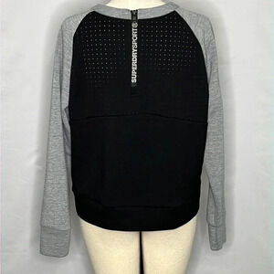 Superdry Core Gym Tech Panel Sweatshirt in City Grey Marl - Size 8 . Excellent pre-owned condition. Comfy crew neck sweatshirt, made from stretch technology it is perfect to layer up with. Featuring thumb holes in the cuffs, ventilation details on the reverse and Superdry branding panels on the front and zip. Approximate measurements: 21" bust, 22" length.