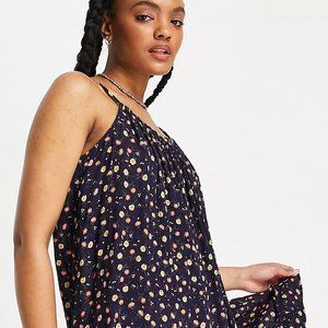Superdry Daisy Tapeze Swing Spaghetti Straps Floral Sun Beach Dress Navy