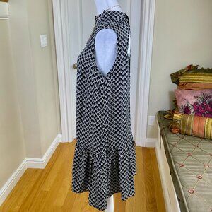 Superdry Dress Sleeveless Drop Waist High Tie Neck Black White Print (~M, 36”)
