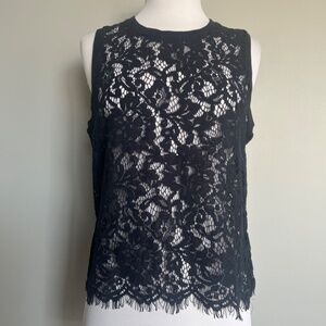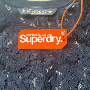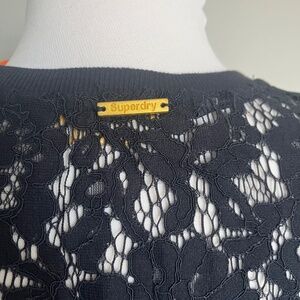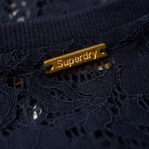 Superdry Eyelash Lace Navy Blue Tank Top Cocktail Sleeveless Blouse