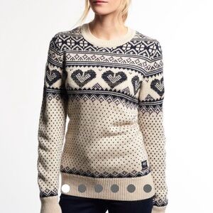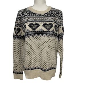 Superdry Fairisle Heart Knit Pullover Sweater Beige/Blue SZ XL Wool Blend is in good preowned preowned condition.