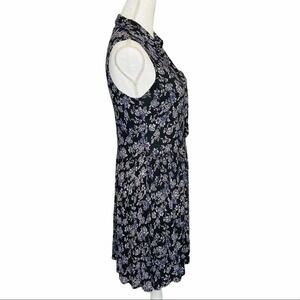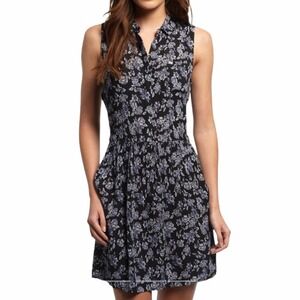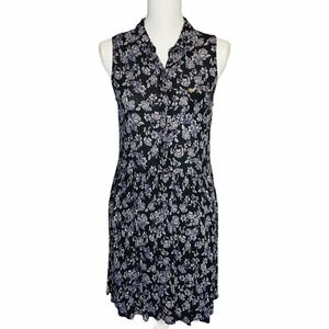 This cute shift dress features an allover floral design, one chest pocket, front button placket from neck to waist, and a side zipper.