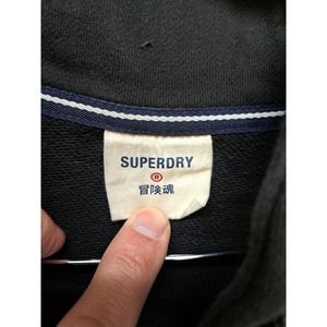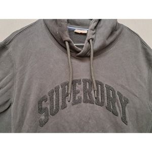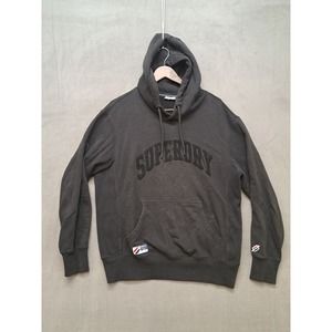 Superdry Mens Large Black Long Sleeve Pullover Hoodie Sweatshirt