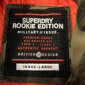 Superdry Mens Rookie Edition Camo Patch Military Jacket Size Large Green AN EXC.