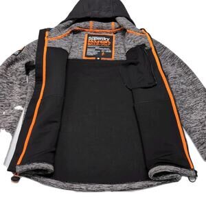 Superdry Mountain Sport Team Fuji Hooded Jacket Mens XL Gray Black Zip Pockets