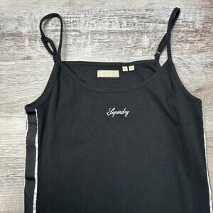 Superdry Ribbed Black Tank Dress Bodycon Racer Stripe Y2K Size 10