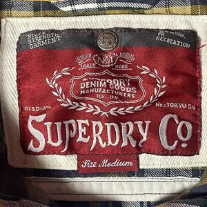 Superdry Shirt Womens Medium Plaid Button Up 3/4 Roll Tab Sleeve Pockets Logo. Good Preowned Condition.