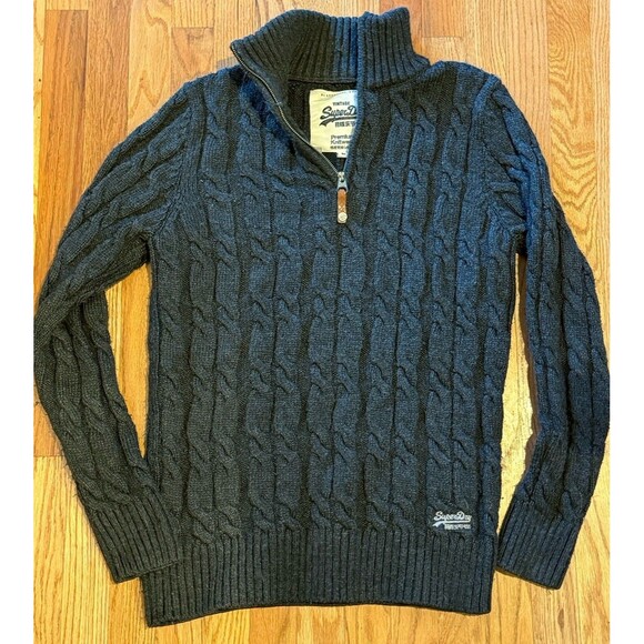 Superdry Sweater Mens L Cable Knit Half Zip Pullover Premium Knitwear