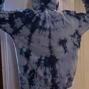 This listing is for a Indigo and White, tie-dye, heavy duty, Unisex, Hoody. Pattern is actual tie-dye and not a print so each one made is different. Used but in good condition with no stains and no fraying. Size is L/XL 40"-44"