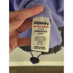 Elevate your outerwear game with this stylish Superdry Original Windcheater Japan Jacket in women’s size Medium. Featuring a triple-layer front zip, hooded design, and soft lavender fleece lining with matching lavender zipper pulls and draw‑cords, this jacket merges Japanese-inspired branding (“SUPERDRY JPN 極度乾燥”) with functional outdoor style.