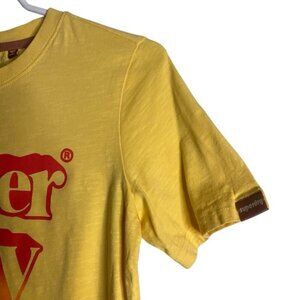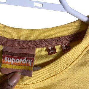 Elevate your casual style with this vibrant yellow tee from Superdry. Crafted from a comfortable cotton blend, this short-sleeved shirt offers a classic crew neck design perfect for everyday wear. Its bright hue adds a pop of color to any outfit, making it a standout piece in your wardrobe.
