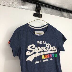 Superdry navy blue graphic logo women’s t-shirt pop of rainbow size Small