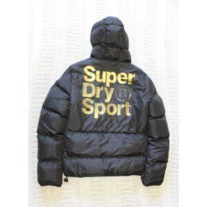Superdry women's Gym Tech Gold Puffa Black Jacket Size Small Full Zip Pockets