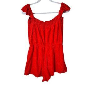 Superdry Premium Embroidered Romper Off Shoulder Shorts One Piece Red US10 Large