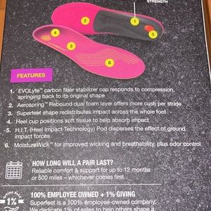 Superfeet Women’s Comfort Run insoles Max Pink 6.5-8 C NIB