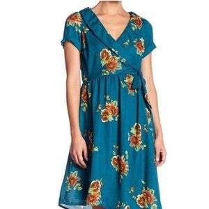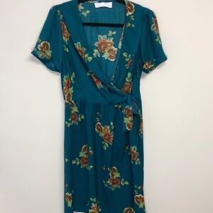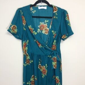 Superfoxx Asymmetrical Hem Floral Print Dress Teal Medium