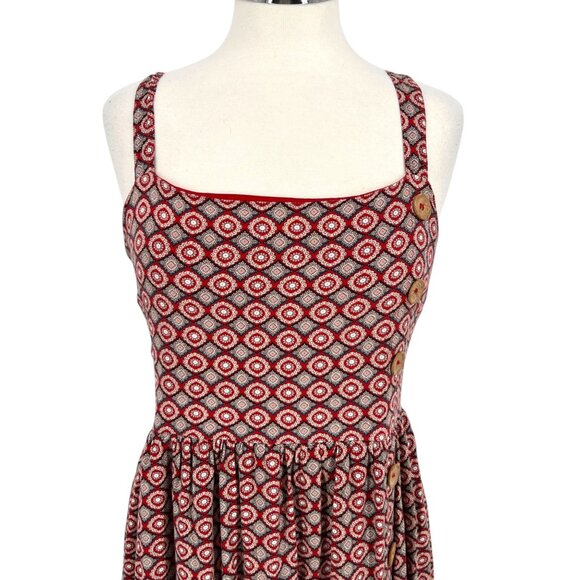 Superfoxx Geometric Print Sleeveless Sun Dress Cross Back Red White Size Large