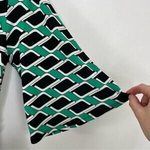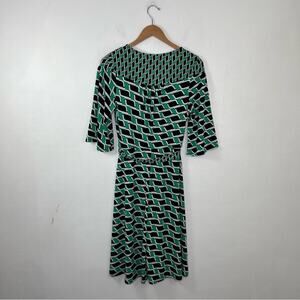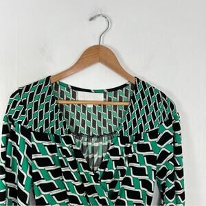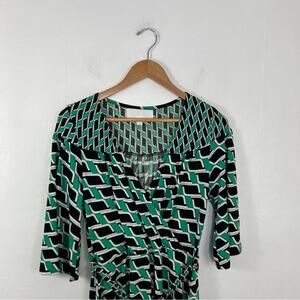 Nordstrom x Superfoxx Short Sleeve Green White Black Geometric Print Midi Belted Wrap Dress