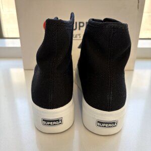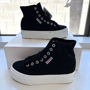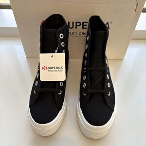 Superga 2708 High Top Platform Sneakers Lace Up Black Size 37 US 6.5 NEW