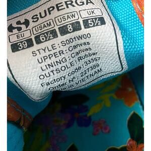Superga 2750 Blue With Floral Pattern Women’s Shoes Size 8. Preowned in good condition. Shoes are in excellent condition on the canvas upper. The front white rubber on both shoes are marked up, in last 2 listing photos. Very pretty bright blue/turquoise color.