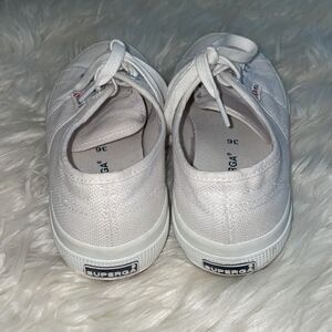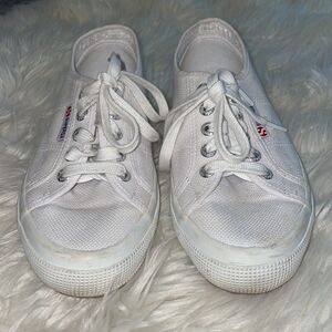Superga 2750 COTU Classic Sneakers in White, size 36 or 6. Excellent used condition. Soles show no wear! Forever iconic, forever new. The classic Superga 2750 sneakers are an Italian style staple and an authentic design piece. Born in 1925, when the young Turin entrepreneur Walter Martiny created a prototype of rubber-soled sports shoes for his tennis-loving wife, today, their appeal remains intact. An ideal blank canvas for designers and artists to create unique and novel interpretations - they remain an enduring fashion favorite season after season. Material - Outsole: 100% Rubber, Upper: 100% Cotton, Lining: 100% Cotton
