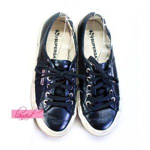 Superga 2750 Cotmetu Blue Metallic Sparkly Shiny Shimmery Low Top Shoes Sneakers