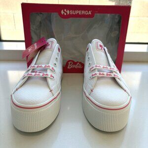 NEW Superga 2790 Barbie Classic Platform Sneakers Low Top Lace Up White Pink Size 37 US 6.5