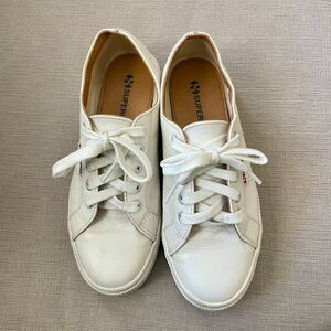 Superga 2790 Nappa Sneakers White Leather Platform Sneakers Size 7 US Orig. $120