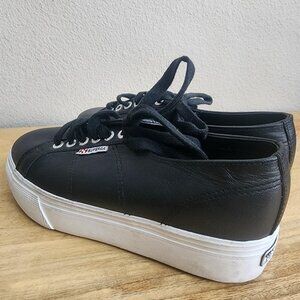 Superga 2790 Platform Leather Shoes Womens Size 8.5 Black Lace Up S00C790