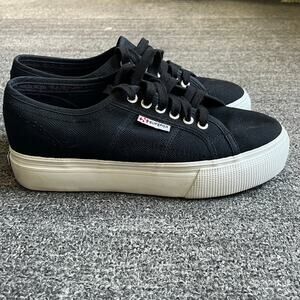 Superga 2790 Platform Sneakers in Black Canvas Women's Sz 10