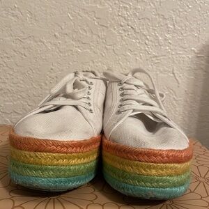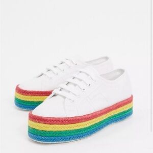 Superga 2790 Rainbow Espadrille Flatform Trainers in White