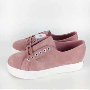 Superga 2790 Womens Size 10 Pink Peach Suede Leather Platform Sneakers‎ Shoes