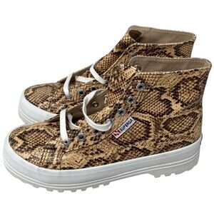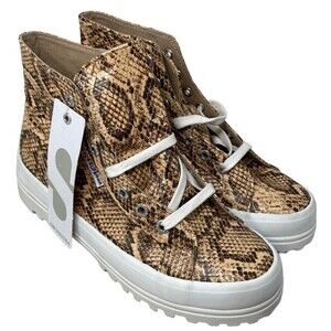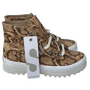 Superga Ankle Boots Tan Snake Synthetic Leather 2341 Womens Size 6.5 US NEW