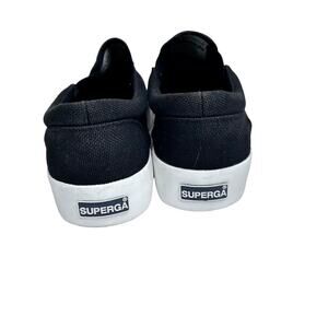 Superga Black White Womens Canvas Low Top Platform Slip On Sneaker. Canvas upper, rubber sole. Excellent pre-owned condition. Size 38/ 7.5