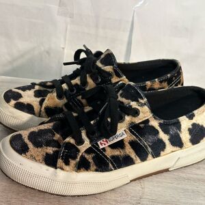 Superga Brown and Black Sneakers with Leopard Print size 6