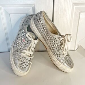 Superga Cotu 2750 Allover Metallic Studded Low Top Lace Up Canvas Sneakers