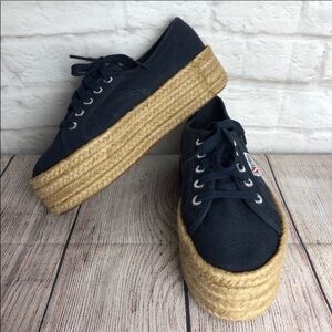 Superga Cotu espadrille platform sneakers. Navy blue with Canvas rope trim. EU size 38, US size 7.5. In excellent preowned condition!