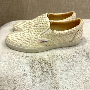 **Effortless Style with Superga Cream Leather Woven Slip-Ons**