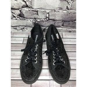 Superga Floral Macrame Black Cut Out Lace Casual Fashion Sneakers Women Sz 39 EU
