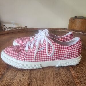 Superga Gingham 2750 Red White Checkered Sneakers Womens Size 2.5