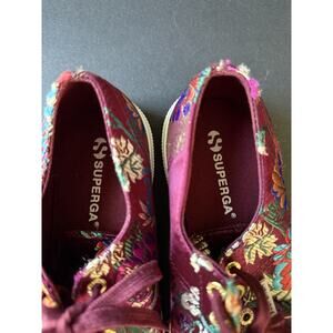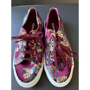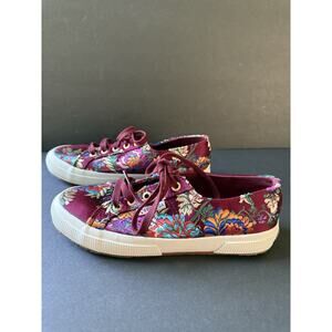 Superga Korelaw Wimens Satin Sneaker Shoes Embroidered Burgundy Size 7 Boho