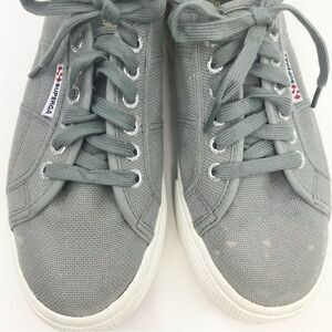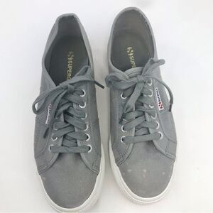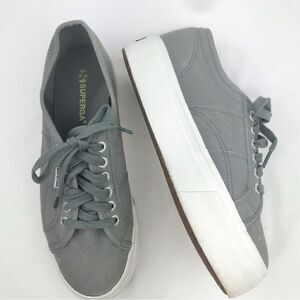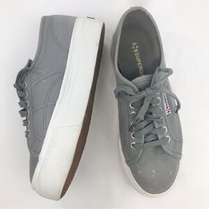 Superga Light Gray Canvas Platform Lace Up Sneakers