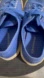 Stylish blue sneakers with durable tan sole. Ideal for everyday wear. Classic lace-up design.