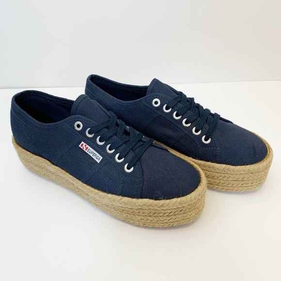 Superga Navy Blue Platform Espadrille Flats